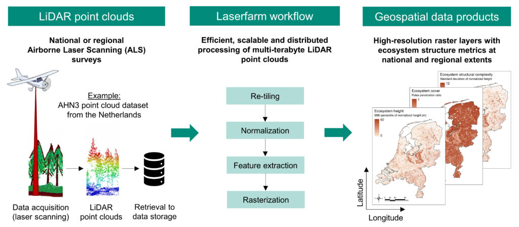 This 3-day technical training workshop focuses on the large-scale and scalable processing of airborne LiDAR for vegetation structure analysis. The workshop emphasises the implementation of scripts and workflows designed for high-throughput, scalable, reproducible, and standardised processing of LiDAR data from national and regional airborne laser scanning (ALS) surveys.